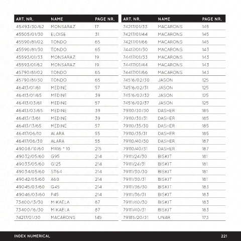 ART. NR. NAME PAGE NR. ART. NR. NAME PAGE NR.