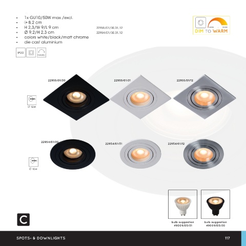 • H 2,3/W 9/L 9 cm 22955/01/30,31,12 2200K - 3000K