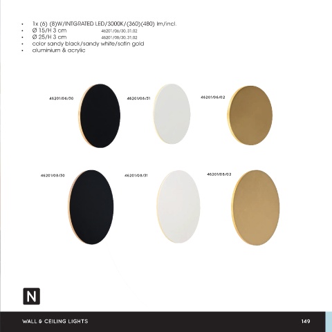 • 1x (6) (8)W/INTGRATED LED/3000K/(360)(480) lm/incl.