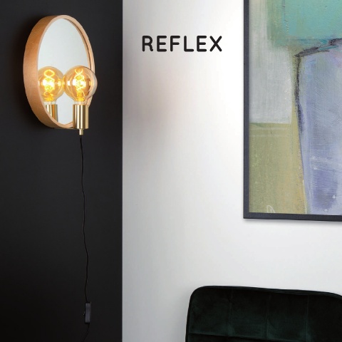 REFLEX • 1x E27/25W max./excl. H 33/W 12/L 31 cm. • • wood & mirror • colors black/light wood 36213/31/72 36213/31/30 bulb suggestion 49032/05/62 WALL & CEILING LIGHTS 183