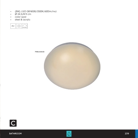 • (8W) /LED GENESIS/3500K/600lm/incl. • Ø 24,5/H 9 cm • color opal • steel & acrylic IP 44 BIANCA-LED 79164/08/61 BATHROOM 239