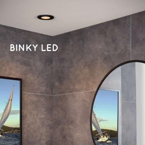 • 6,5W/ INTEGRATED LED/ 3000K/500lm/incl. • Ø 8,8/H 7,3 cm • colors white/black • PC, iron, silicone & aluminium IP 44 Ø 7cm APPROPRIATE FOR OUTDOOR USE INCL. BLACK & WHITE RING, INTERCHANGEABLE BINKY LED 22973/06/99 BATHROOM 259