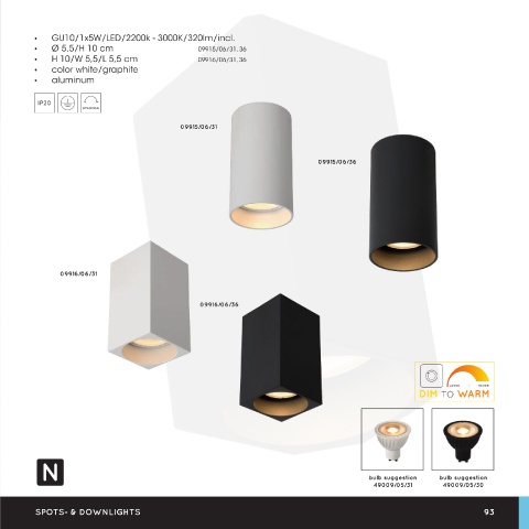 • GU10/1x5W/LED/2200k - 3000K/320lm/incl.