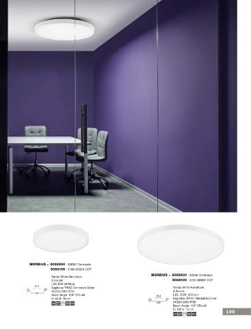 LED 24W 2341Lm 9058107 · 2700-6000K CCT Sandy White Aluminium MORBIUS 9058900 · 3000K Dimmable