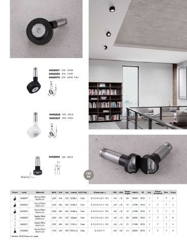 9492802 Aluminium 12W 48V 250 926Lm Cree D: 3.1 H: 9.1 >90 <20 36 O 3000K IP20 III Photo Code Material Watt Volt mA Lumen LED Chip Dimension (cm) CRI UGR Beam Kelvin IP Adj. Driver Dim. Class