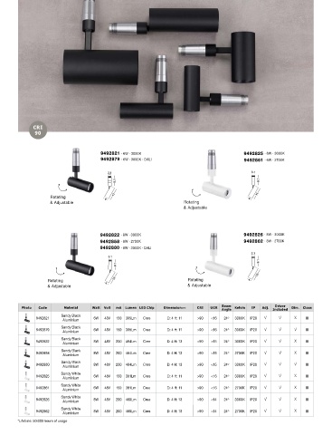 9492858 Aluminium 8W 48V 200 464Lm Cree D: 4 H: 13 >90 <15 24 O 2700K IP20 III 9492824 Aluminium 23W 48V 650 1950Lm Cree D: 6 H: 17 >90 <18 24 O 3000K IP20 III