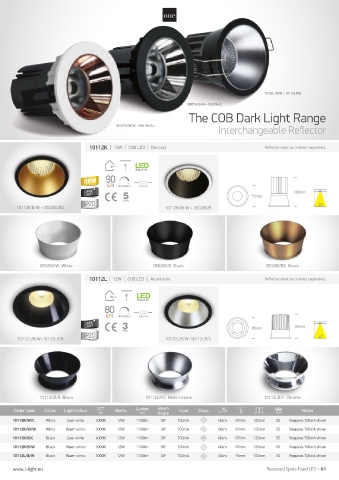 10112L/B/W Black Warm white 3000K 12W 1100lm 40° 700mA 40cm 75mm 100mm 50 Requires 700mA driver