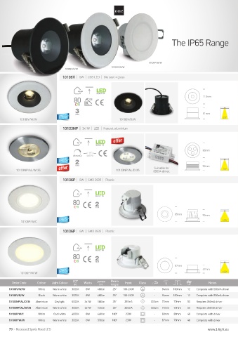 10106P/W/W White Warm white 3000K 6W 570lm 100° 230V - 67mm 70mm 48 Complete with driver