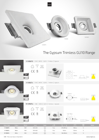 11105GT4 | 10W | MR16 | GU10 | Trimless | Gypsum