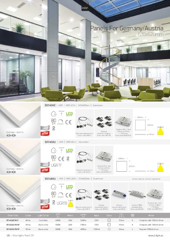 Order Code Colour Light Colour CCT Watts Lumen Input Class Notes