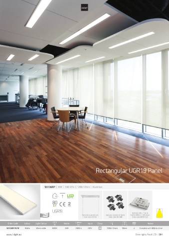 Optional suspension kit. Optional recessed kit (4pcs). Push to DIM & 1-10V driver.