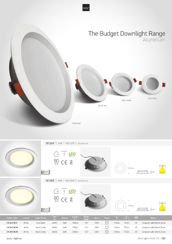 10124T/W/W White Warm white 3000K 24W 1700lm 120° 230V 210mm 75mm 20 Complete with 600mA driver