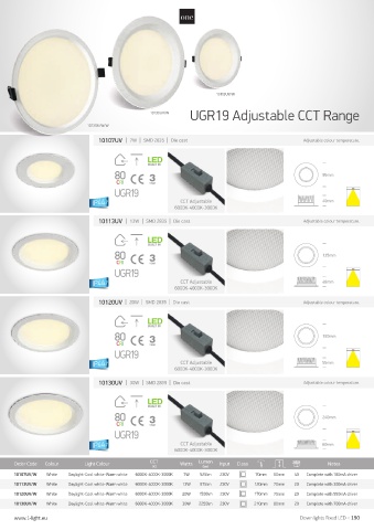 10107UV/W White Daylight-Cool white-Warm white 6000K-4000K-3000K 7W 525lm 230V 70mm 60mm 40 Complete with 180mA driver