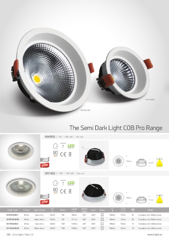 10115CD/W/W White Warm white 3000K 15W 1095lm 120° 230V 160mm 90mm 18 Complete with 400mA driver
