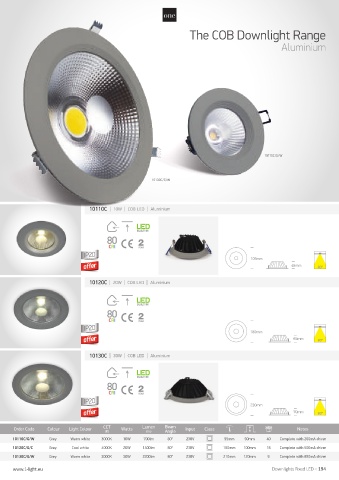 10130C/G/W Grey Warm white 3000K 30W 2200lm 80° 230V 210mm 120mm 9 Complete with 850mA driver