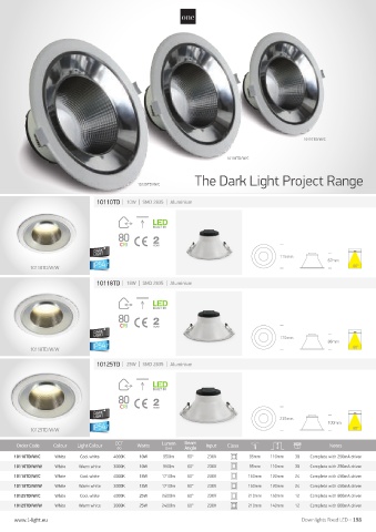 10118TD/W/W White Warm white 3000K 18W 1710lm 60° 230V 150mm 120mm 24 Complete with 450mA driver
