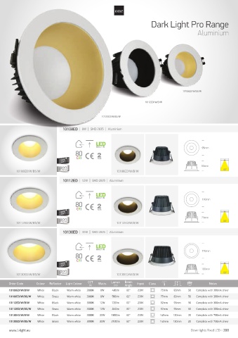10108ED/W/B/W White Black Warm white 3000K 8W 480lm 60° 230V 75mm 80mm 50 Complete with 300mA driver