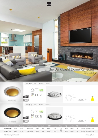 10116FD/W/BS White Brass Warm white 3000K 16W 800lm 230V 155mm 80mm 20 Complete with 300mA driver