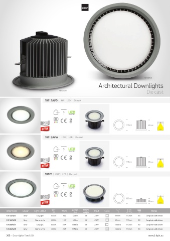 10128/G/W Grey Warm white 3000K 28W 1150lm 90° 230V 169mm 110mm 10 Complete with driver