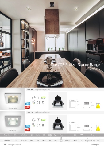 50105K/W/W White Warm white 3000K 5W 240lm 100° 230V 85x85mm 115mm 24 Complete with 400mA driver