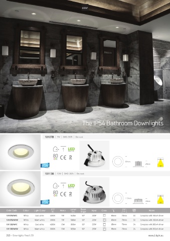 10113B/W/W White Warm white 3000K 13W 925lm 90° 230V 95mm 70mm 24 Complete with 300mA driver