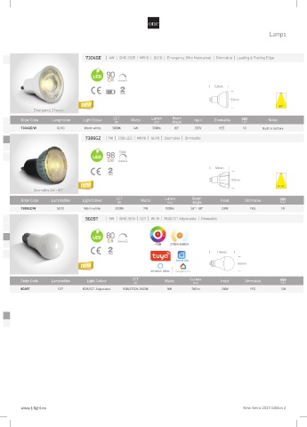 Order Code Lampholder Light Colour CCT Watts Lumen Beam Input Dimmable Notes