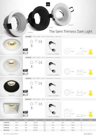 50105TG | 10W | MR16 | GU10 | Semi trimless | Die cast