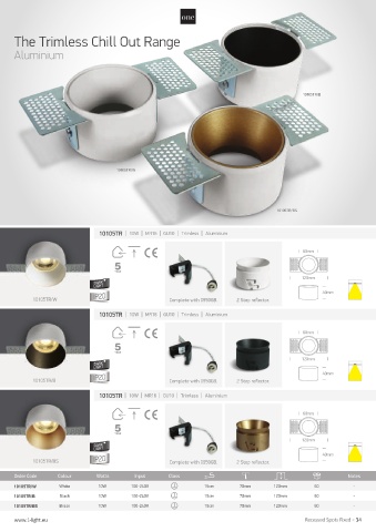 10105TR | 10W | MR16 | GU10 | Trimless | Aluminium