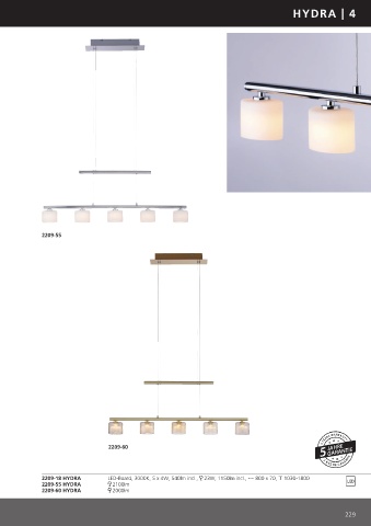 HYDRA | 4 2209-55 2209-60 2209-18 HYDRA LED-Board, 3000K, 5 x 4W, 540lm incl., 23W, 1150lm incl., 800 x 70, 1030-1800 2209-55 HYDRA 2100lm = 2209-60 HYDRA 2000lm 229