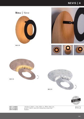 NEVIS | 4 Neu | New 9011-79 9011-12 9011-21 9011-12 NEVIS LED-Board, 3000K, 1 x 6W, 760lm incl., 8W, 550lm incl., 9011-21 NEVIS 240, 80-210, Ring 350° drehbar/ring rotates 350° =π 9011-79 NEVIS 290lm 245