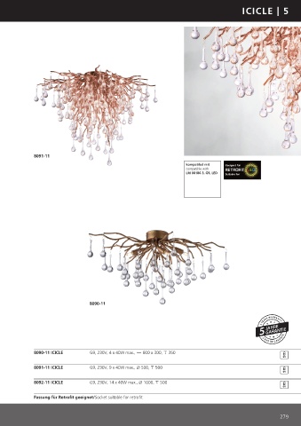 8091-11 ICICLE G9, 230V, 9 x 40W max., ∏ 500, 500