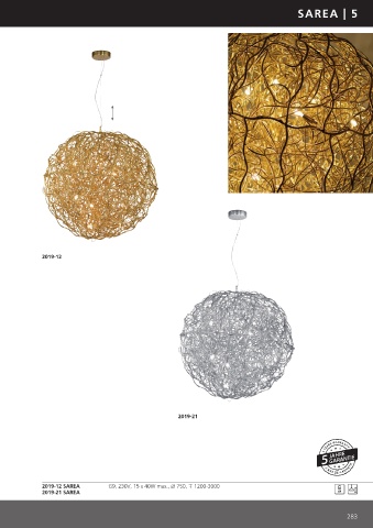 SAREA | 5 2019-12 2019-21 2019-12 SAREA G9, 230V, 15 x 40W max., 750, 1200-3000 2019-21 SAREA @ f 283