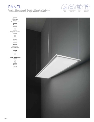 LED panel with aluminum structure, acrylic diffuser and white finish. use areas use use areas use