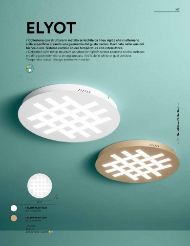 / Collection with metal structure available in white or gold version / Collection with metal structure enriched by rigid lines that alternate on the surfaces
