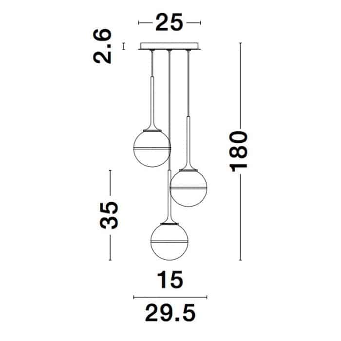 Material: Vidro Opala Branco Latão Ouro Tipo de lâmpada: Lâmpada LED G9 3x5W 230V IP20 Excluída Dimensões: D: 25 H: 180 cm